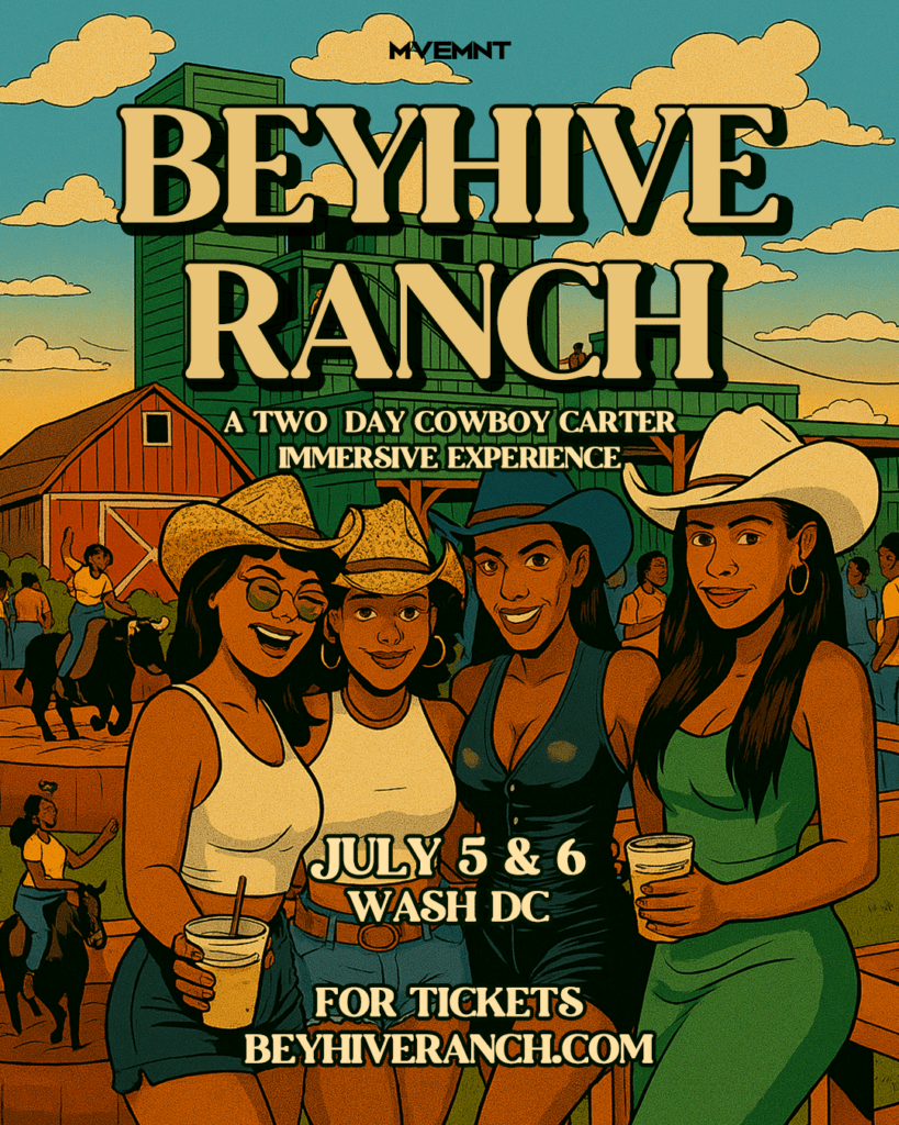 Get ready for BeyHive Ranch, a two-day immersive experience celebrating Cowboy Carter in true Queen Bey fashion! From start to finish, expect all Beyoncé everything—nonstop music, Texas-sized eats, Sir Davis drinks, games and more. Whether you’re riding mechanical bulls, two-stepping under the stars, or just showing out in your best cowboy chic, this is the ultimate rodeo for the BeyHive.