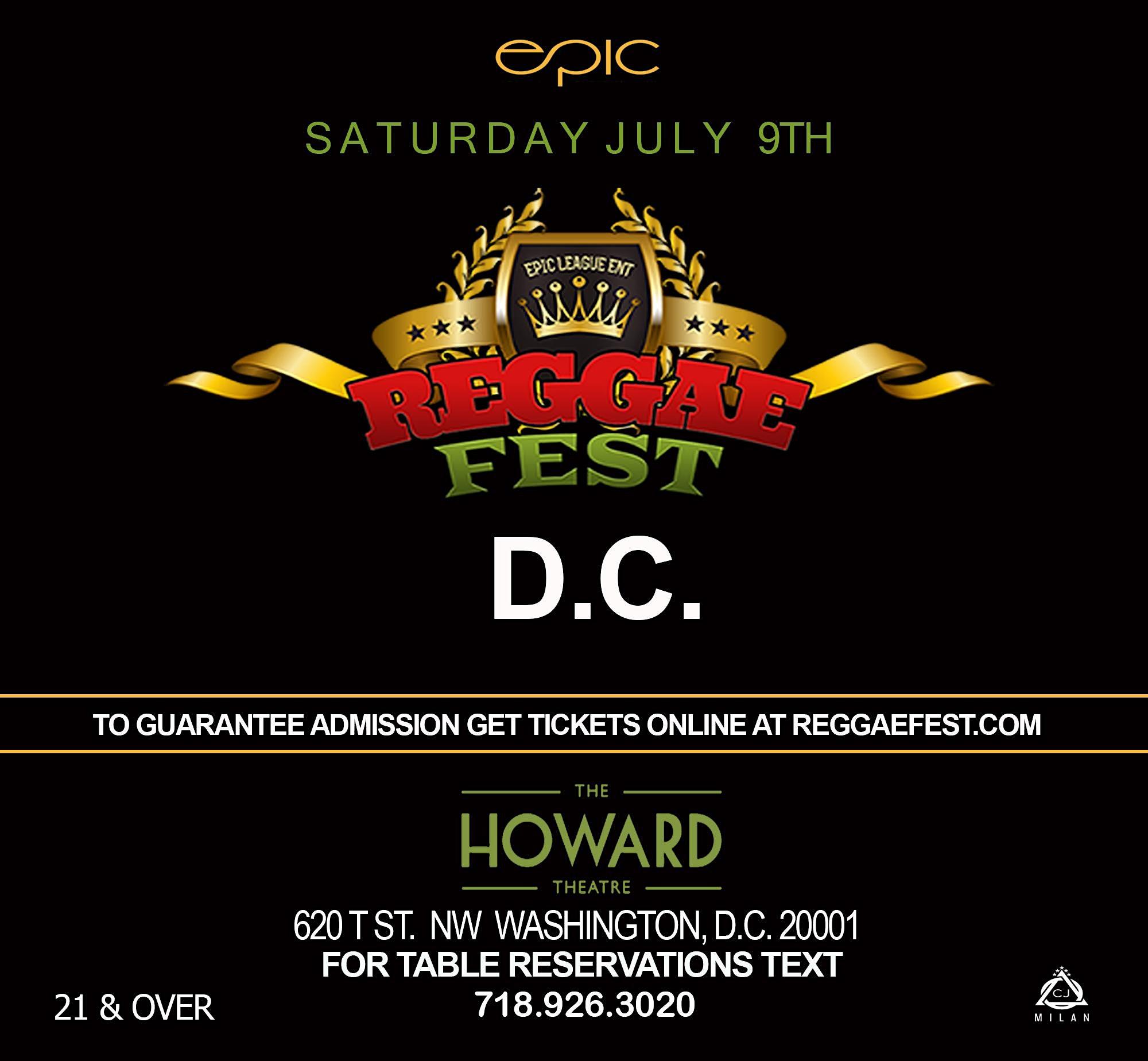 The Howard Theatre 620 T Street Northwest, Washington, DC, United StatesReggae Fest D.C. is back at The Howard TheatreEPIC LEAGUE ENTERTAINMENTPRESENTSREGGAE FEST D.C.WE'RE BACK AT THE LEGENDARY HOWARD THEATRE!! COME AND DANCE TO THE BEST IN DANCEHALL, SOCA, AFROBEATS, REGGAE, AND MORE.DRESSCODE: ABSOLUTELY NO FITTED OR SNAPBACK HATS PERMITTED. HATS ARE ALLOWED EXCEPT FOR FITTEDS OR SNAPBACKS. NO HOODIES, DURAGS, TIMBERLANDS, TEAM JERSEYS,SWEATPANTS, TANK TOPS, […]
